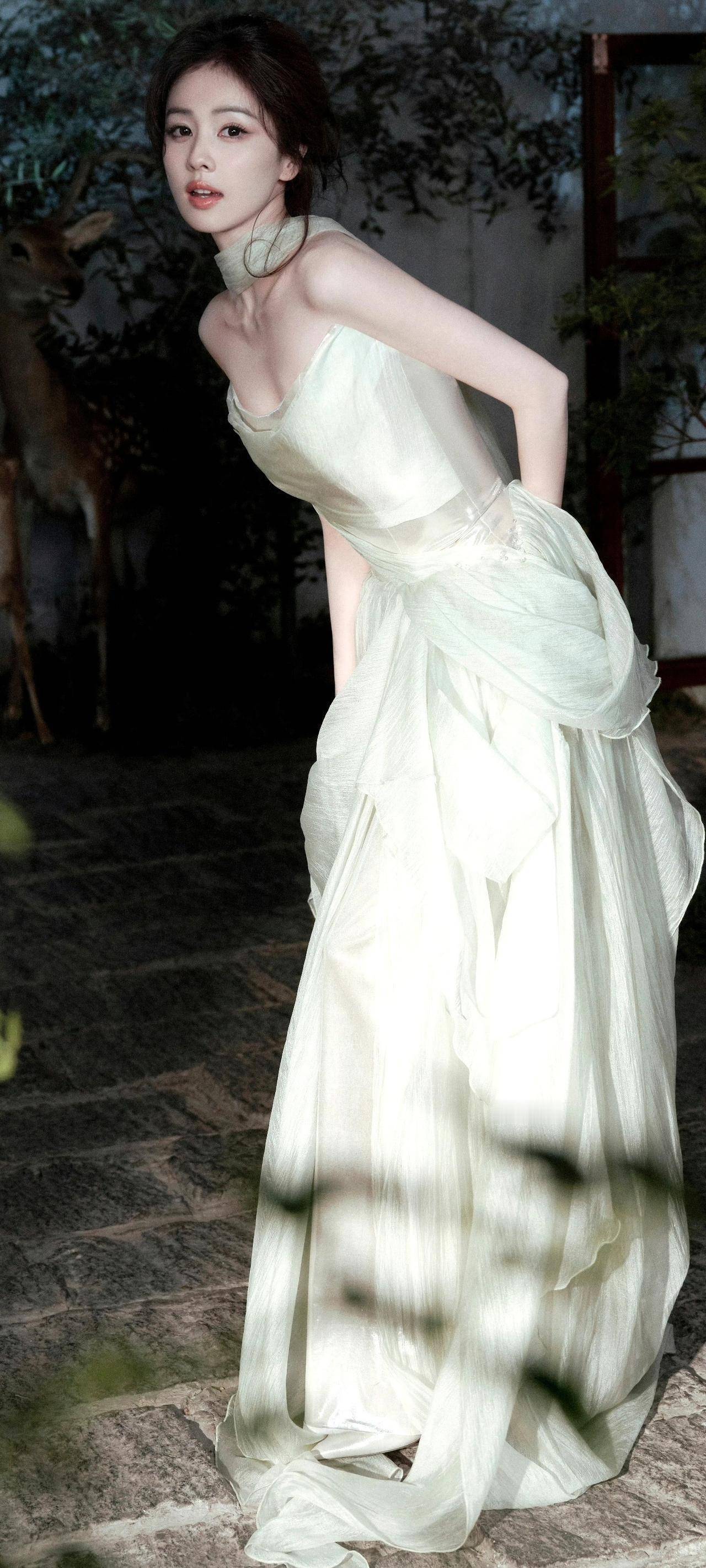 白鹿演绎优雅复古风,轻纱裙摆飘逸尽显女性魅力